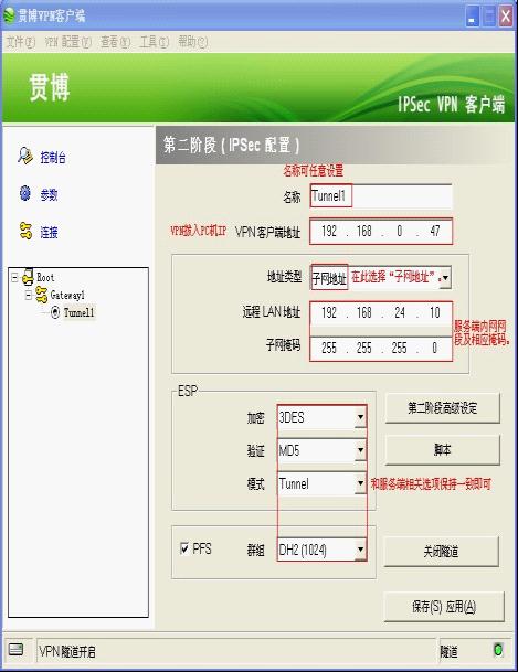 備注:IPSEC VPN服務端網段為192.168.24.0/24,撥號主機IP為192.168.0.47.